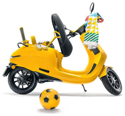 ஓட்டும்போது இசை இயக்கக்கூடிய கட்டமைப்பில் பொருத்தப்பட்ட ஸ்பீக்கர்கள் கொண்ட ஸ்கூட்டர். மக்கள் நிறைந்த நகர்ப்புற பகுதிகளில் பாதுகாப்பை மேம்படுத்தும் வகையில் ஒலி உருவாக்கவும் ஸ்பீக்கர்களைப் பயன்படுத்தலாம்.