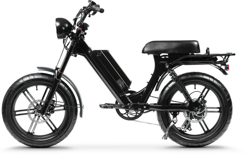 The moped has a 750 வாட் electric motor for a top speed of 45 கி.மீ/மணி.