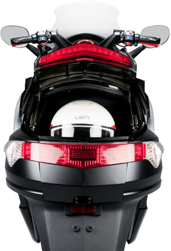 The LEMᵉᵛ Stream is an innovative electric maxi-scooter from Spanish-Italian e-scooter startup Ecomotion. The company is a cooperation between multiple companies with a long history in the motorcycle industry: the well known Italian brand L.E.M. (motorcycle helmets), the Spanish brand LUMA (motorcycle locks), the Spanish race motorcycle developer Inmotec and the award-winning product designer Dhemen (receiver of the Red Dot Award).