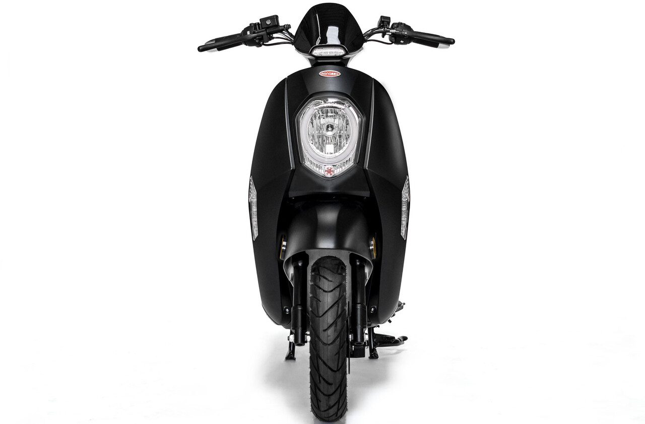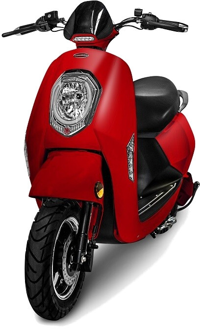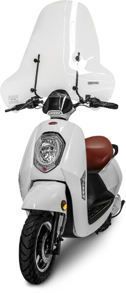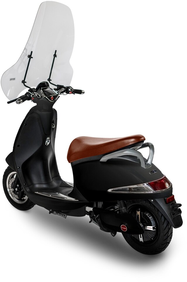 The scooter can be delivered in many color combinations, with different saddle colors, an integrated anti-theft system, a wind shield and an integrated phone holder.