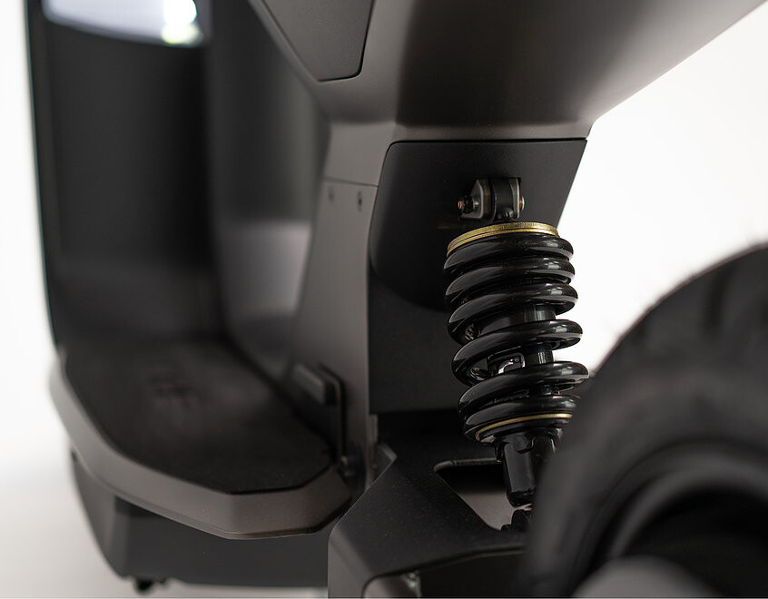 The scooter has a aluminum frame, a high end brake system and a low center of gravity.