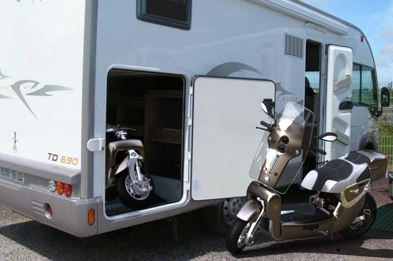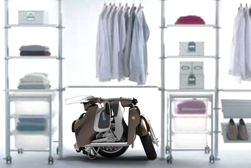 The scooter can fold and unfold in 30 seconds. In folded state, the scooter fits in the boot of a small car.