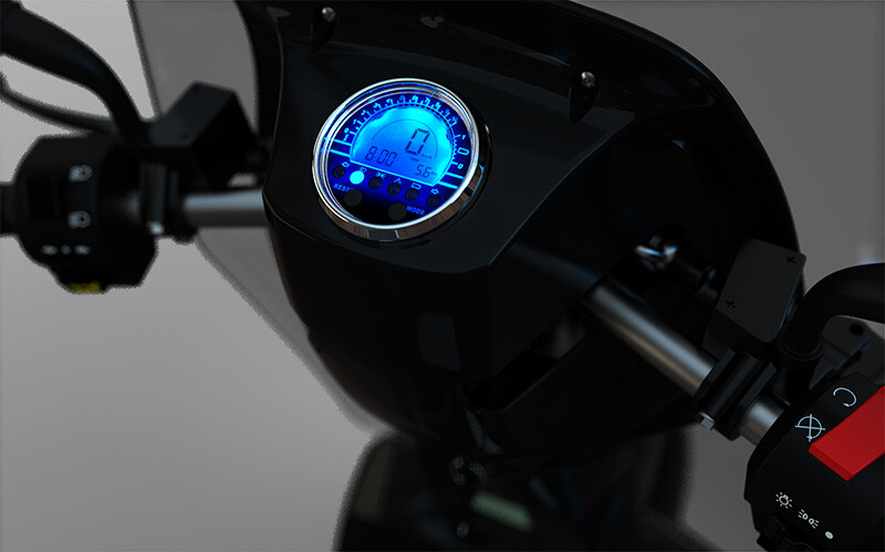 The scooter has front and rear disc brakes with ABS and is equipped with regenerative braking in which the energy from braking is returned to the battery. Regenerative braking helps to prevent air pollution from disc brakes.